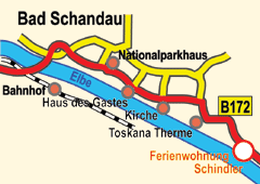 Autobahn bis Autobahndreieck Dreieck Dresden-West, auf die A 17 bis Pirna, weiter auf der B 172 über Königstein bis Bad Schandau - durch den Ort - weiter Richtung Schmilka - rechts an der Elbe.